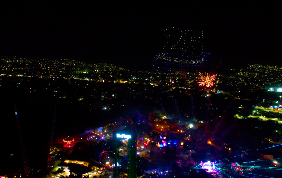 Creamos un espectáculo de drones que homenajeó su historia, su espíritu inagotable y los recuerdos que generaciones han construido entre sus atracciones.