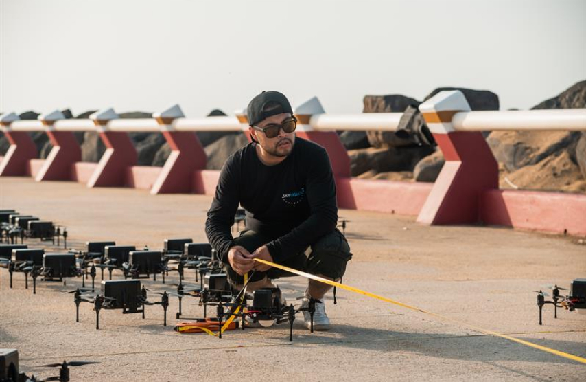Un equipo técnico certificado opera todo el espectáculo: pilotos, ingenieros, programadores y supervisores de seguridad aérea para garantizar un show indoor seguro y profesional.